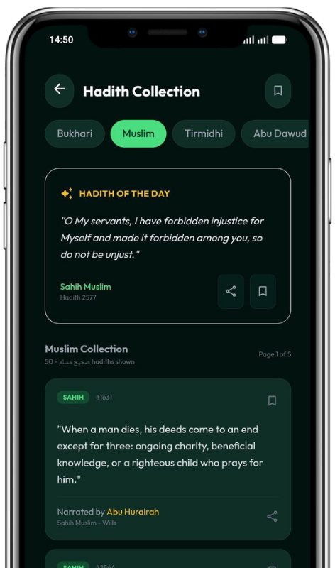 Explore a curated library of verified Hadith from trusted collections designed for daily reflection and easy reference.