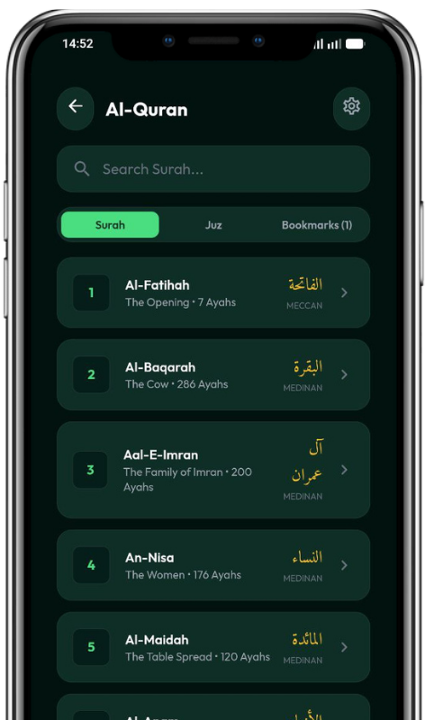 Access the complete Quran with a clean, distraction-free reading experience designed for daily reflection.