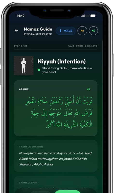 A complete guided prayer tutorial designed to help you understand and perform Salah correctly with clear instructions, translations, and audio support.