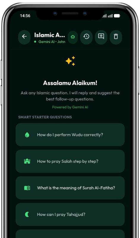An AI powered assistant designed to help you explore Islamic knowledge from prayer guidance to Quran explanations in a clear and accessible way.