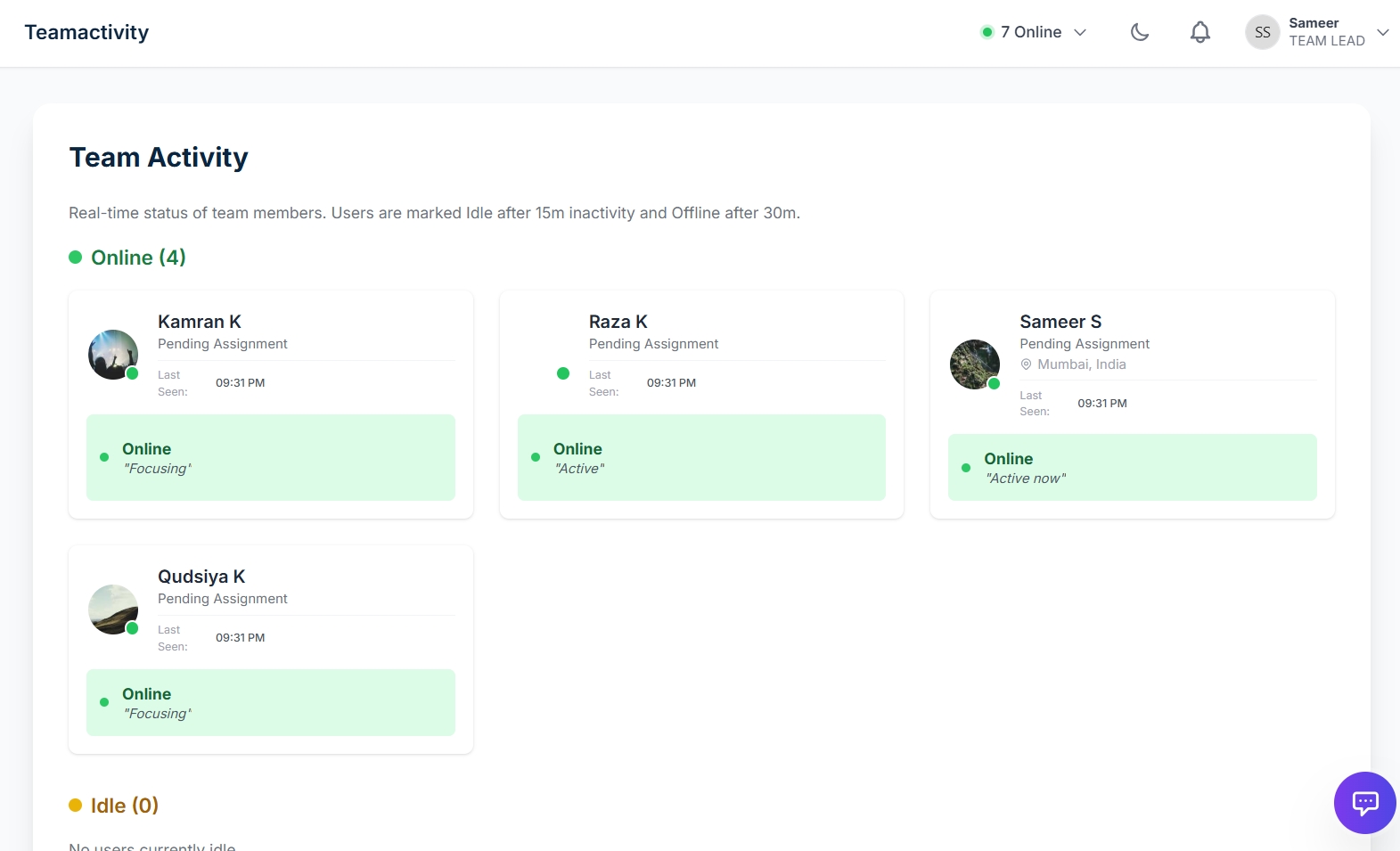 Synchronize team schedules and manage leave requests seamlessly. The real-time activity checker lets you know who is online, on break, or in deep focus mode.