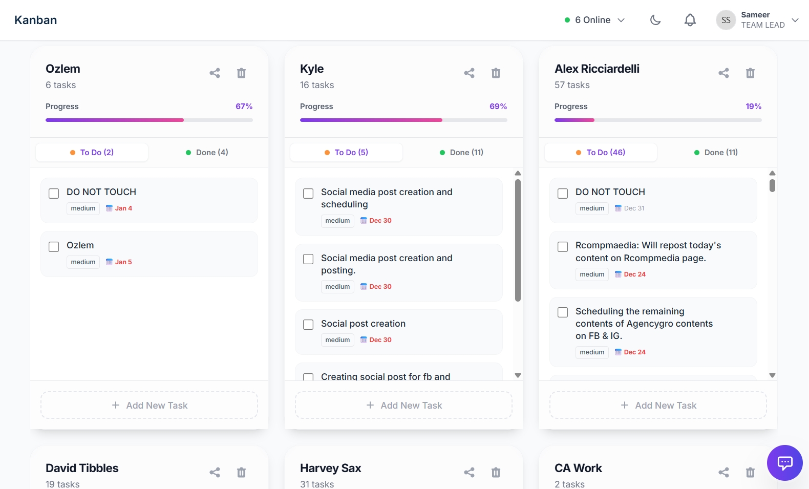 Instant visibility on who is online and working on what task.
