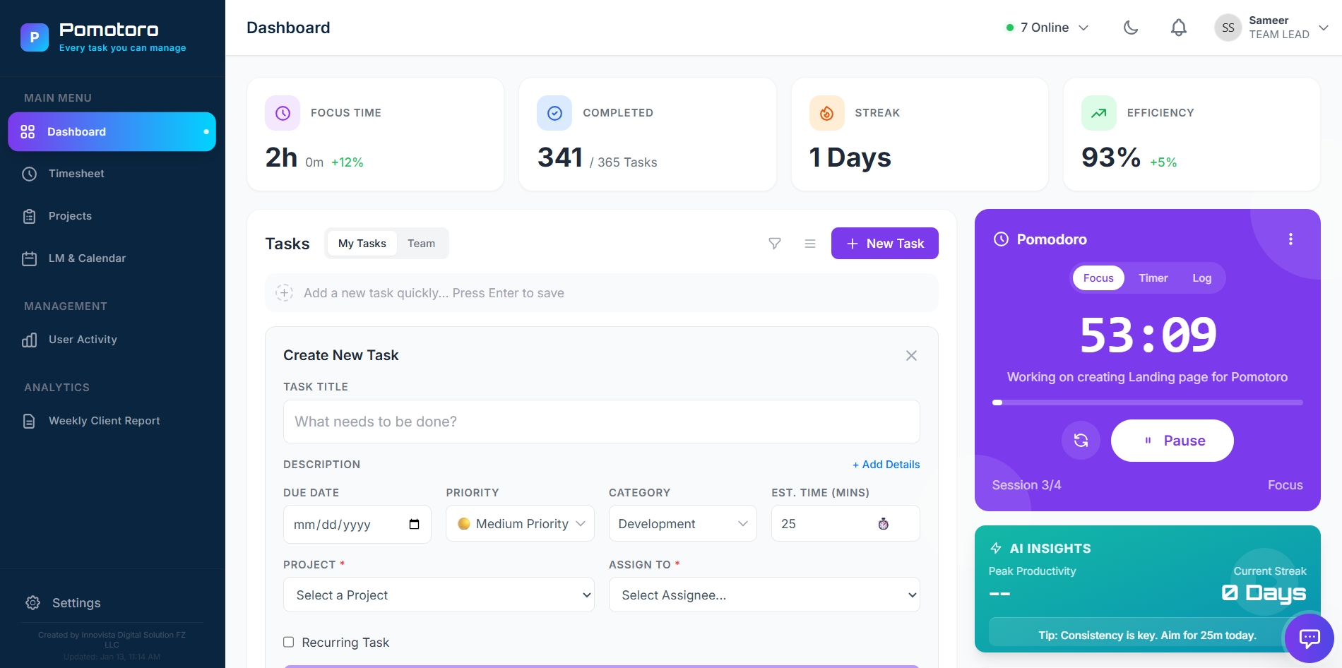 Join Innovista Digital Solutions and transform how your team tracks time and projects.