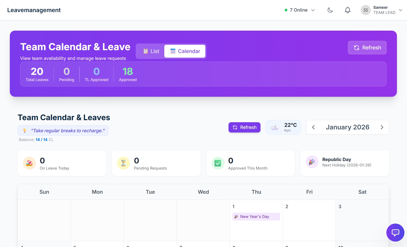 Calendar, Leave & Activity Status