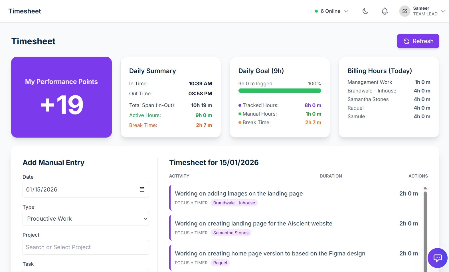 Synchronize team schedules and manage leave requests seamlessly. The real-time activity checker lets you know who is online, on break, or in deep focus mode.