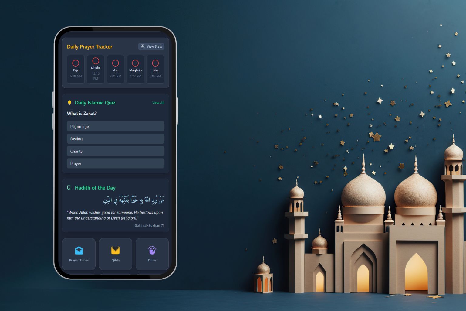 An all-in-one app for prayer times, reminders, and daily Islamic guidance.